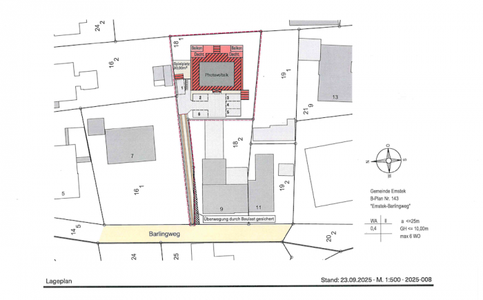 Auf einem 862 m² großen Grundstück wird ein Wohnhaus mit 6 großzügigen Wohnungen erstellt.